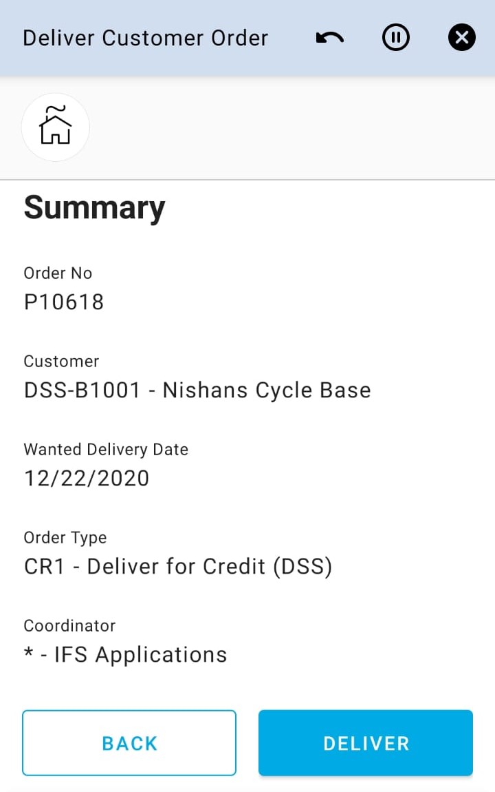Deliver Customer Order app can be used to deliver pending customer orders on the user’s default site.