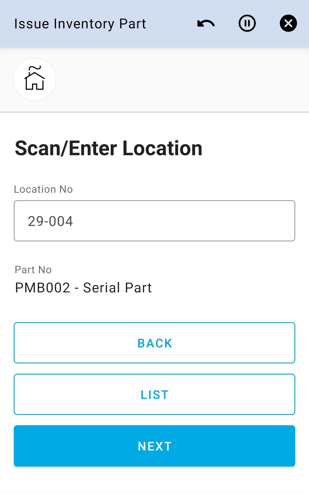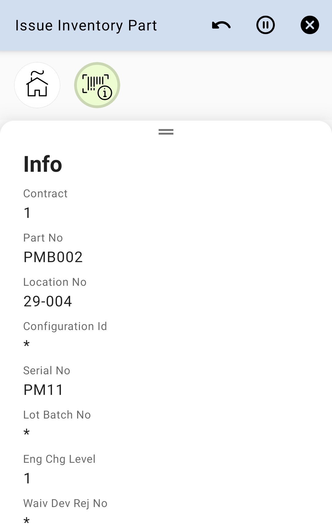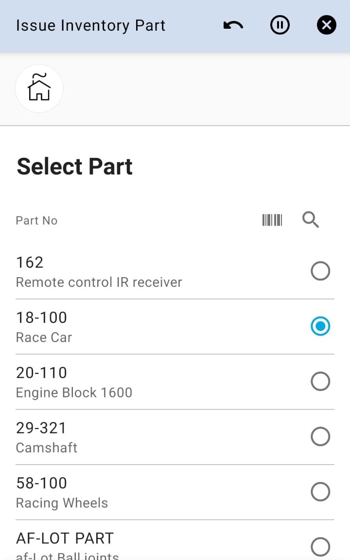 Issue Inventory Part app can be used to manually issue an inventory part on the user’s default site.