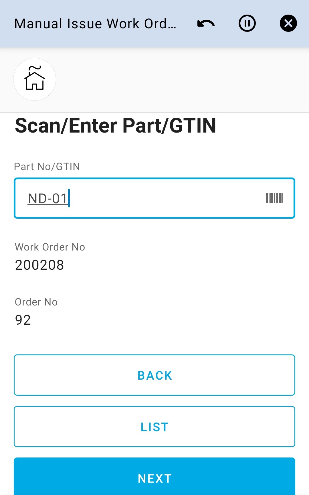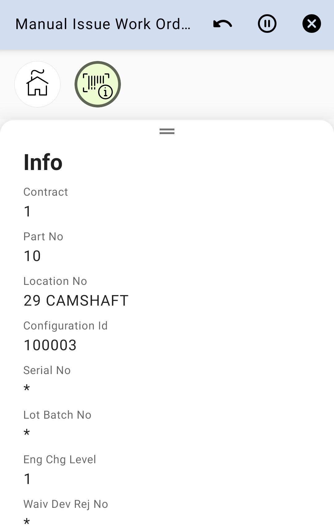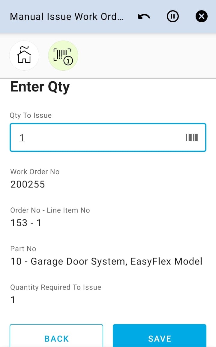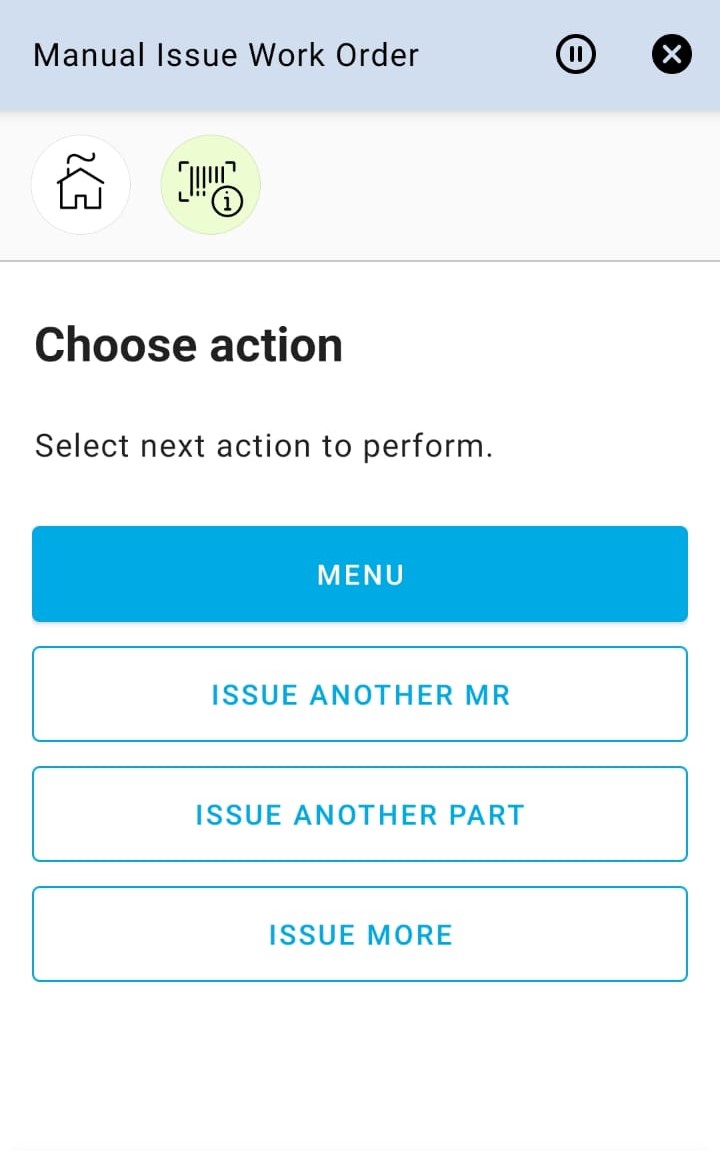 Manual Issue Work Order app can be used to manually issue material for Work Order Tasks on the user’s default site.