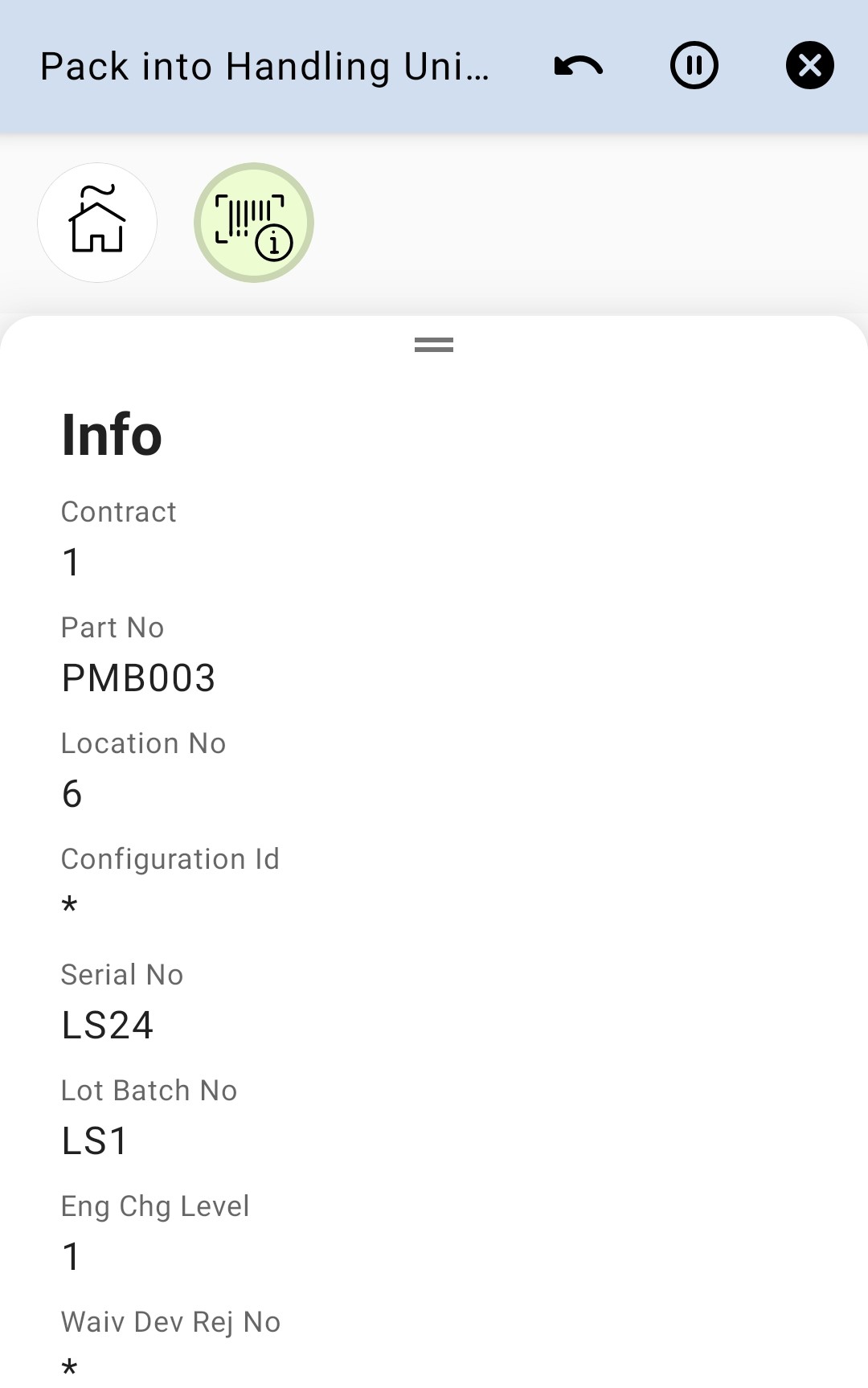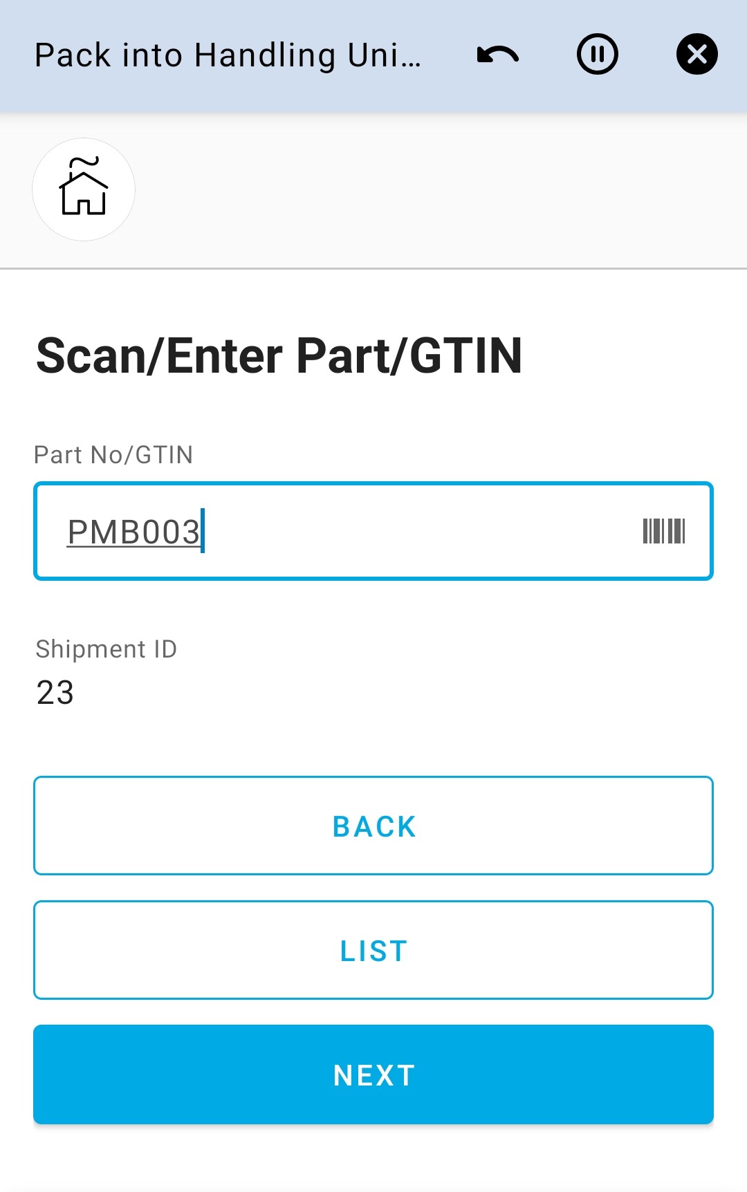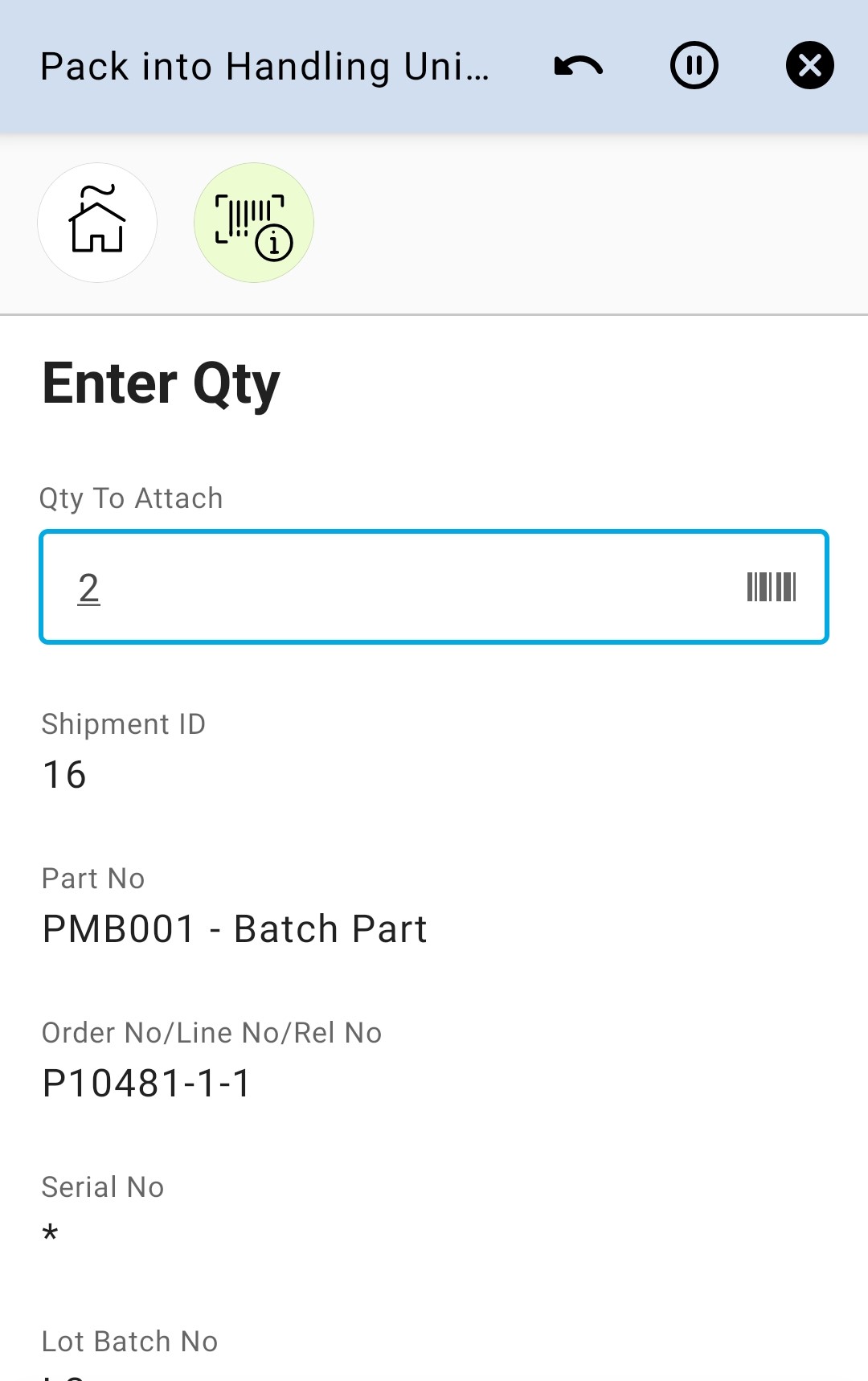 Pack Into Handling Unit on Shipment app can be used to attach picked quantities in shipment lines to shipment handling units on the user’s default site.