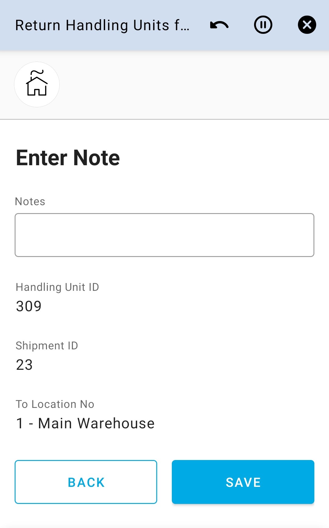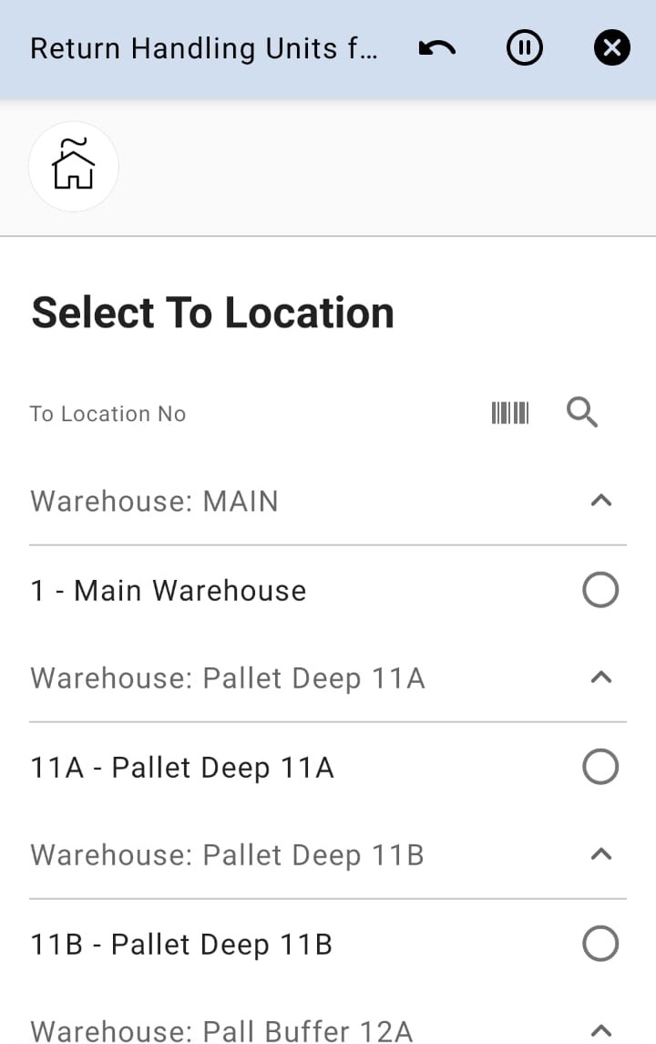 Return Handling Units from Shipment Inventory app can be used to return Handling Units from shipment inventory to regular stocks on the user’s default site.