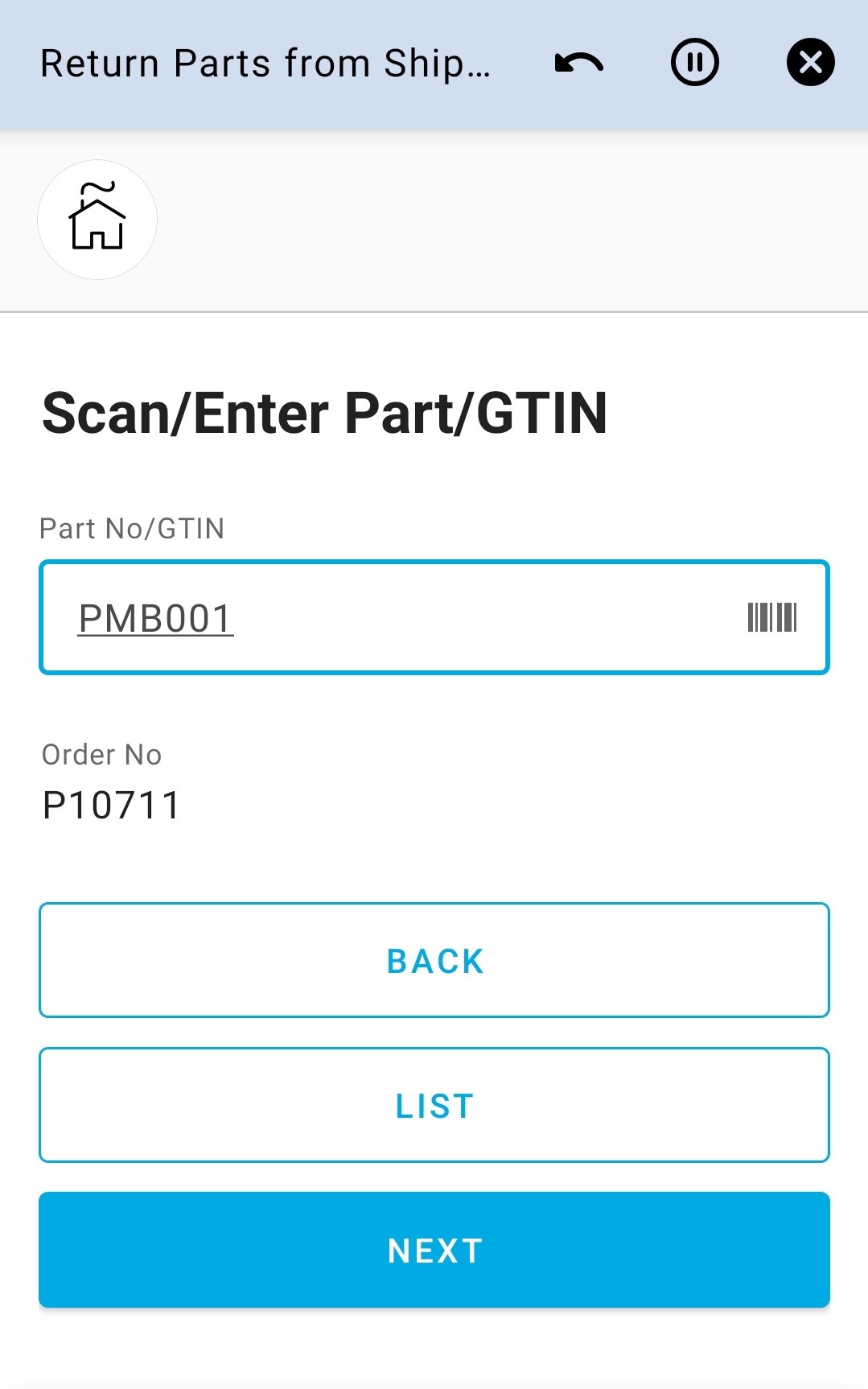 Return Parts from Shipment Inventory Cloud