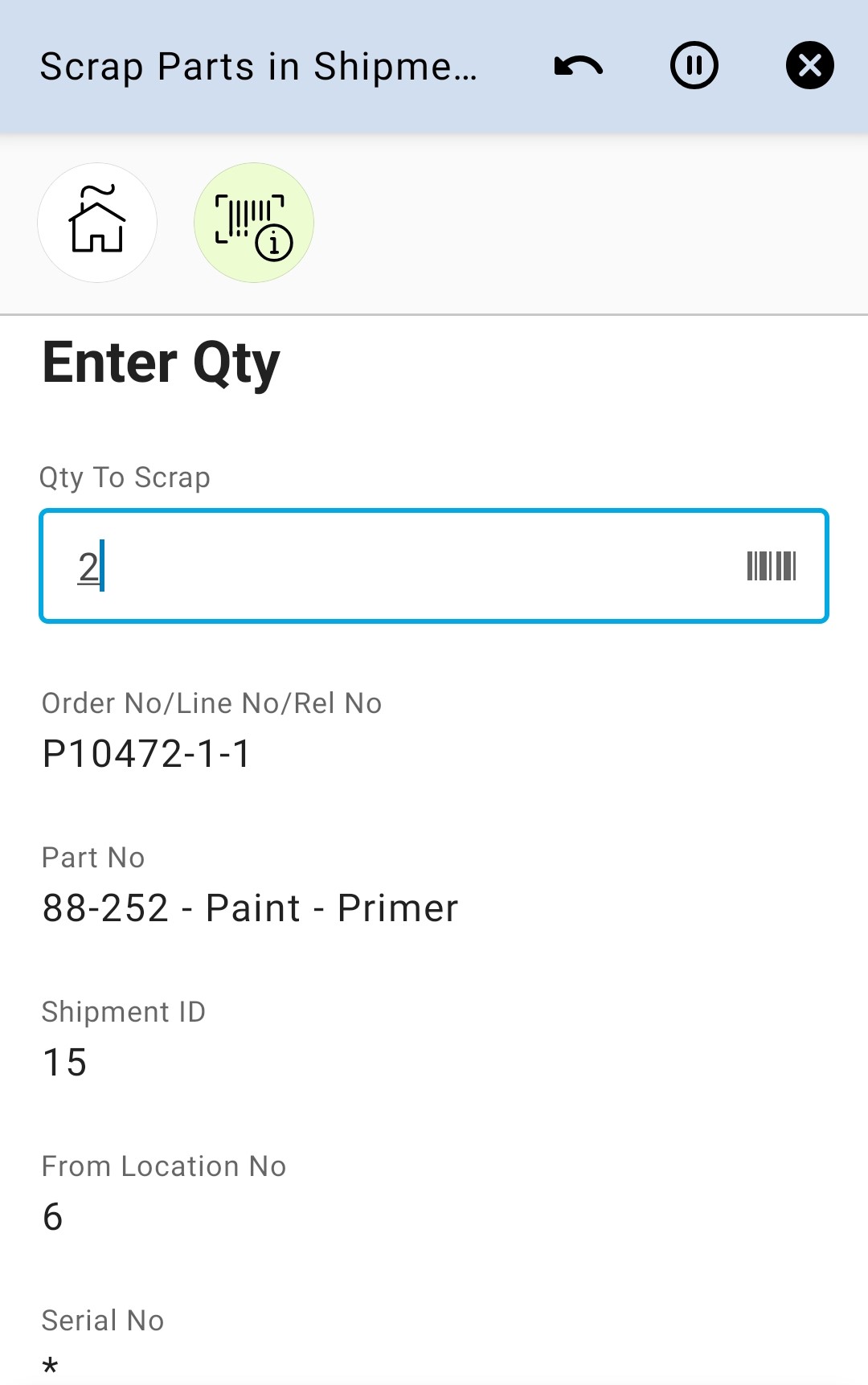Scrap Parts in Shipment Inventory Cloud
