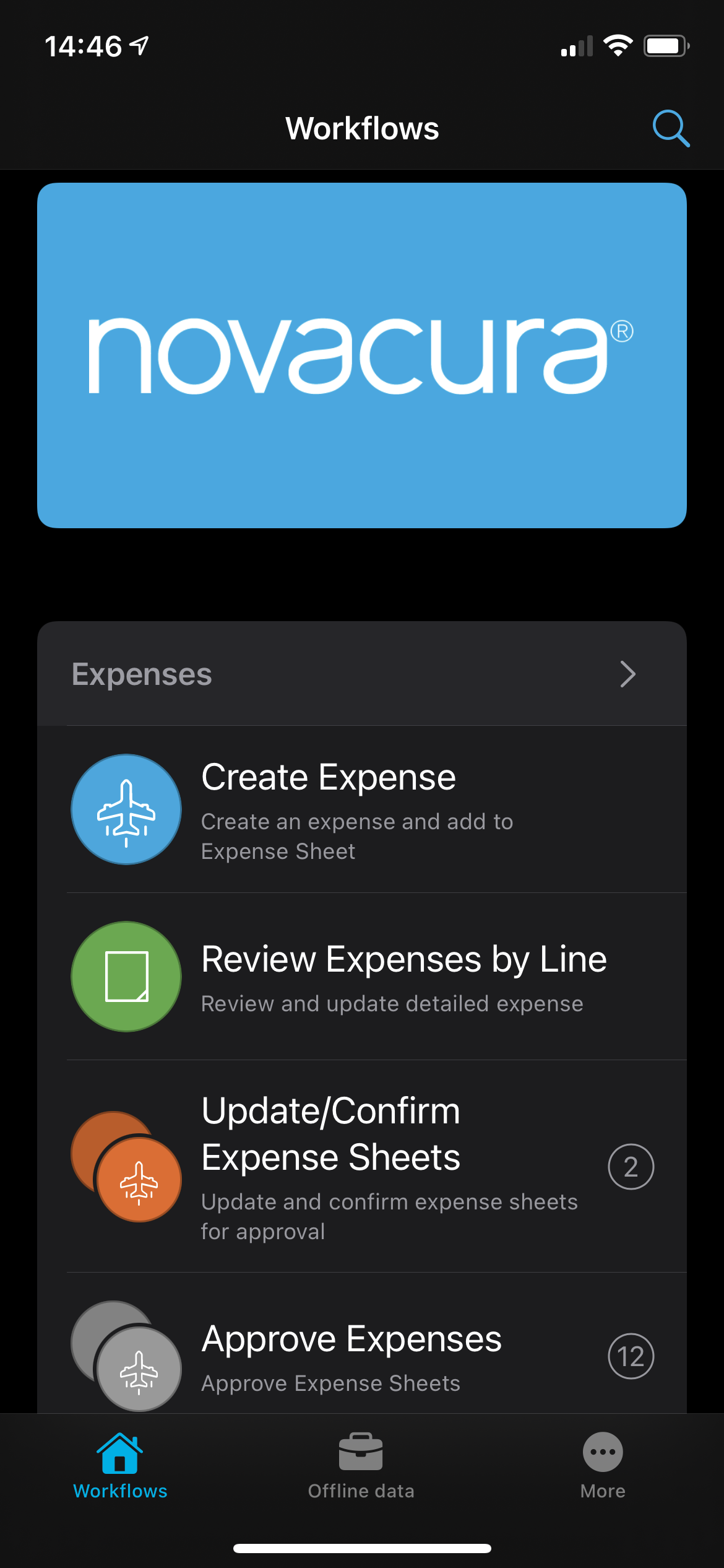 Novacura Travel and Expense application supports create, review, and update of expenses by Expense Sheet or Expense Details. Confirm Expense Sheets while traveling and quickly capture media into one easy to consume document connected to the Expense Sheet for Supervisory approval.