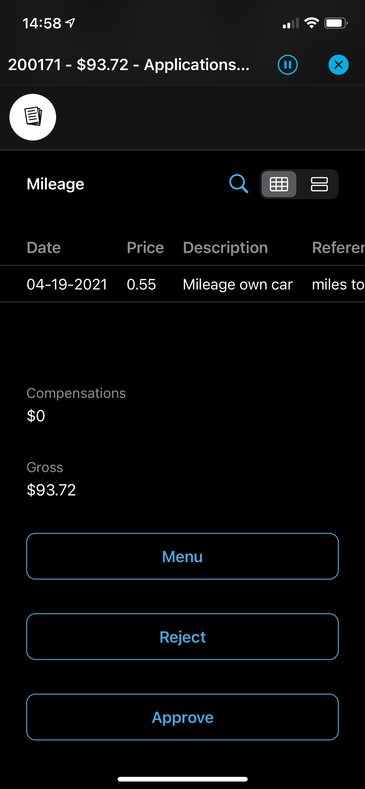 Novacura Travel and Expense application also allows Supervisors to review Expense Sheets and associated document attachments in order to approve or reject, right from their mobile devices.