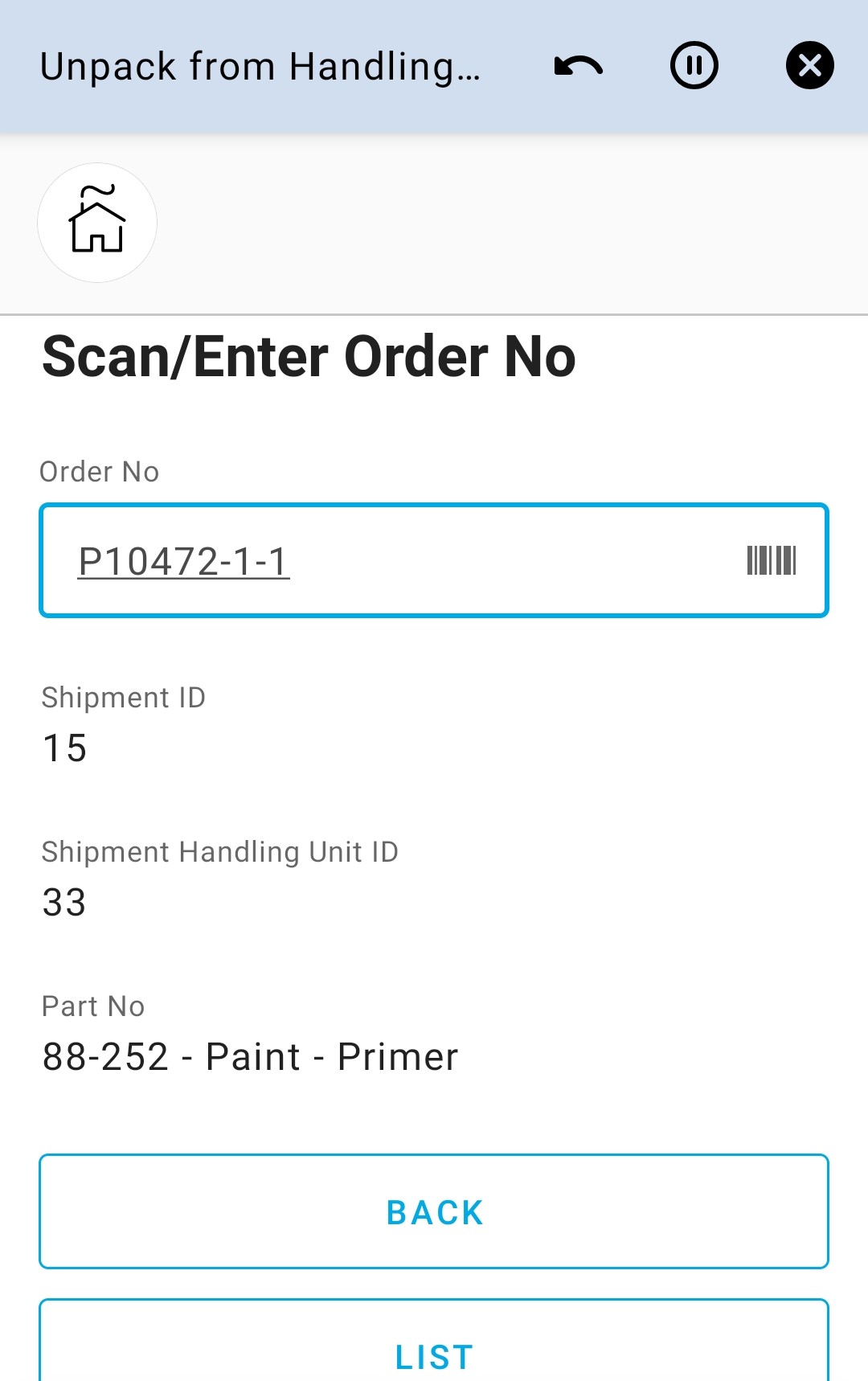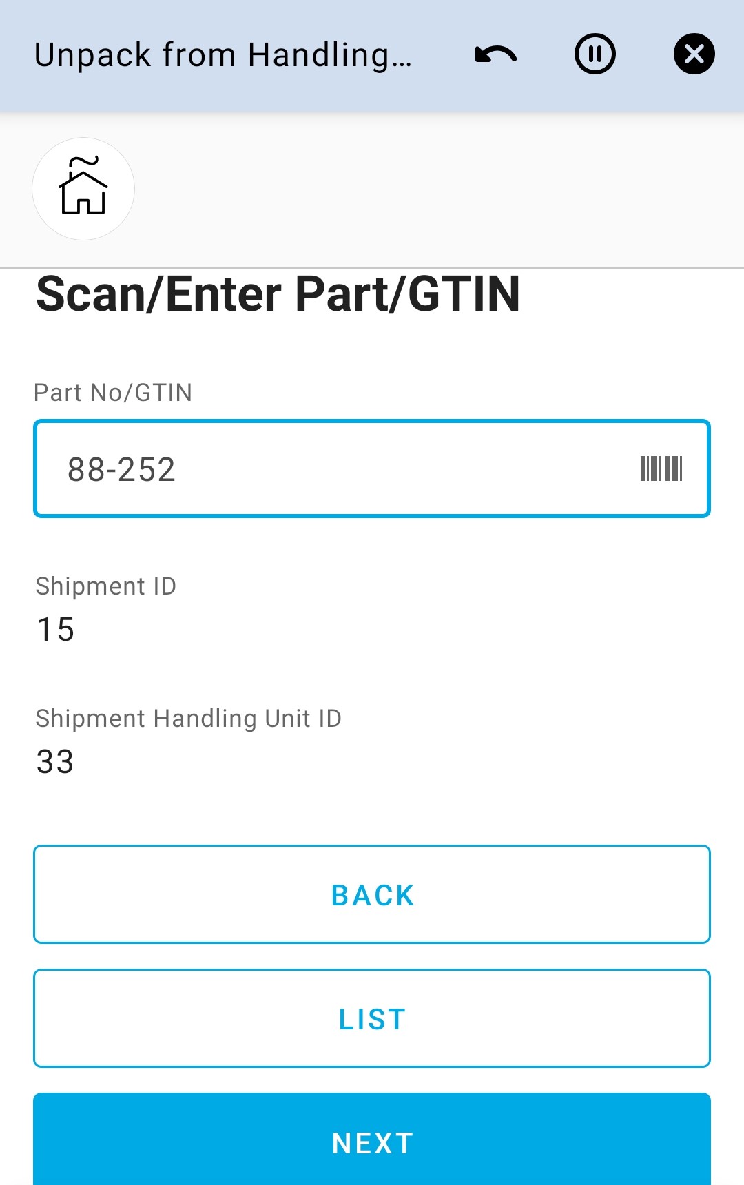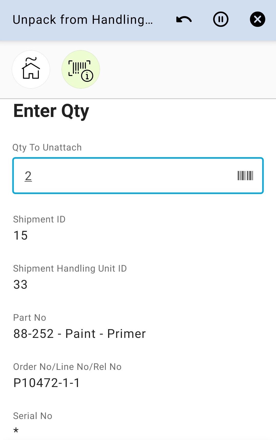 Unpack from Handling Unit on Shipment app can be used to unattach parts from shipment connected handling units on the user’s default site.